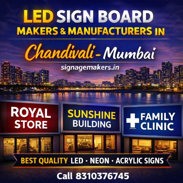 Welcome to signagemakers.in, your reliable partner for LED Sign Board Makers & Manufacturers in Chandivali, Mumbai. We specialize in designing and manufacturing high-quality LED sign boards that help businesses stand out in competitive commercial and residential areas. Chandivali is a well-connected business location with offices, residential...