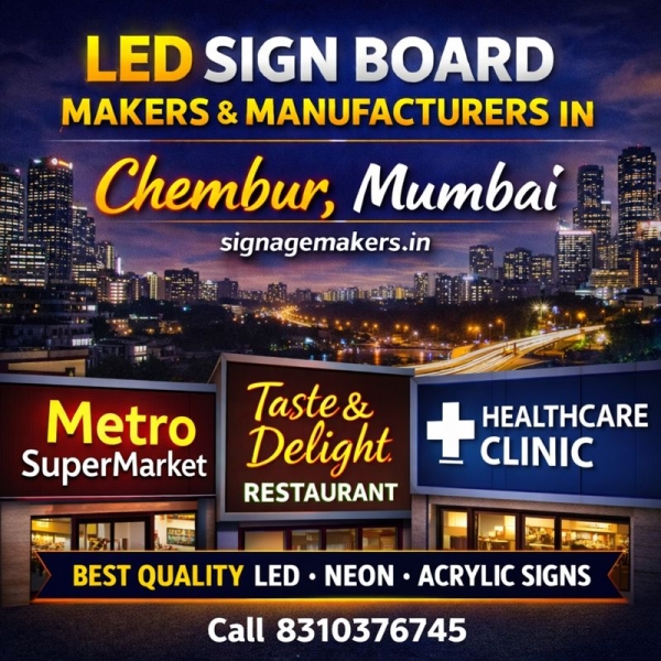 Welcome to signagemakers.in, a trusted choice for LED Sign Board Makers & Manufacturers in Chembur, Mumbai. We specialize in designing and manufacturing high-quality LED sign boards that help businesses improve visibility and create a strong brand presence in busy commercial locations. Chembur is a well-established business...