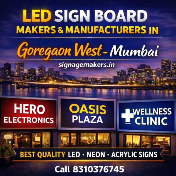 Welcome to signagemakers.in, your trusted destination for LED Sign Board Makers & Manufacturers in Goregaon West, Mumbai. We specialize in manufacturing high-quality LED sign boards that help businesses stand out in crowded commercial locations and busy marketplaces. Goregaon West is a well-known commercial and residential area...