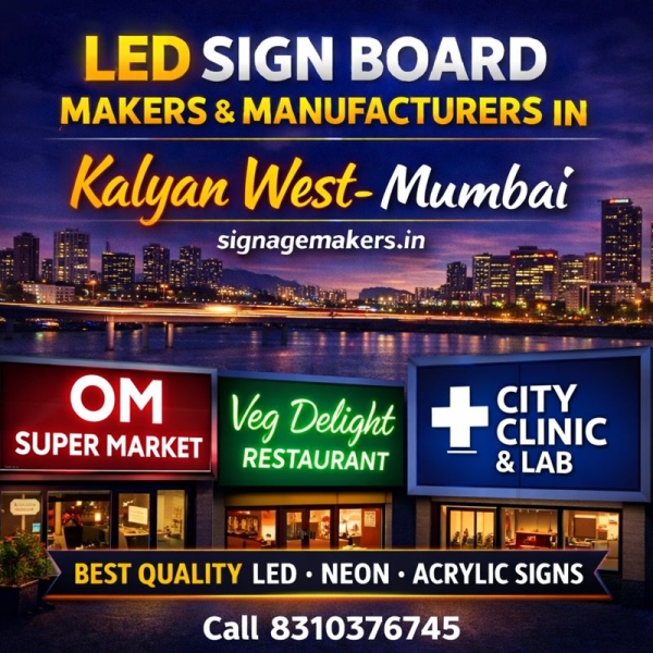 Welcome to signagemakers.in, a trusted name among LED Sign Board Makers & Manufacturers in Kalyan West, Mumbai. We specialize in manufacturing high-quality LED sign boards that help businesses increase visibility and build a strong brand presence in busy commercial and residential locations. Kalyan West is a...
