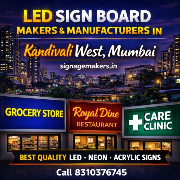 Welcome to signagemakers.in, your trusted LED Sign Board Makers & Manufacturers in Kandivali West, Mumbai. We specialize in manufacturing high-quality LED sign boards that help businesses stand out in crowded commercial streets and residential marketplaces. Kandivali West is a busy area with retail shops, showrooms, clinics,...