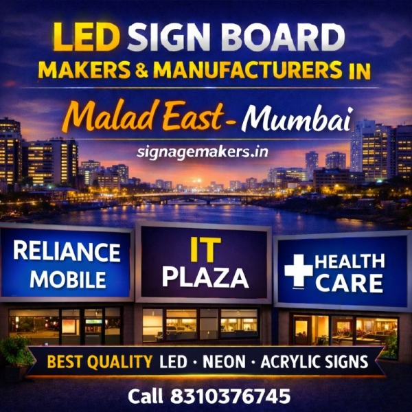 Welcome to signagemakers.in, a trusted name for LED Sign Board Makers & Manufacturers in Malad East, Mumbai. We specialize in manufacturing premium-quality LED sign boards that help businesses enhance visibility and build a strong professional brand identity in busy commercial locations. Malad East is a rapidly...