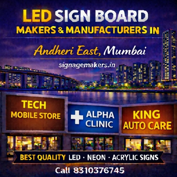 Welcome to signagemakers.in, a professional choice for LED Sign Board Makers & Manufacturers in Andheri East, Mumbai. We are direct manufacturers specializing in high-quality LED sign boards that help businesses increase visibility, attract customers and create a strong brand presence. Andheri East is a major commercial...