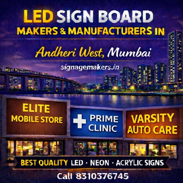 Welcome to signagemakers.in, a trusted name for LED Sign Board Makers & Manufacturers in Andheri West, Mumbai. We are direct manufacturers specializing in premium LED sign boards designed to enhance brand visibility and create a strong professional presence in busy urban locations. Andheri West is one...