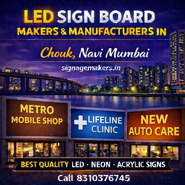 Welcome to signagemakers.in, a reliable destination for LED Sign Board Makers & Manufacturers in Chouk, Navi Mumbai. We are direct manufacturers specializing in durable, high-visibility LED sign boards that help businesses stand out and attract more customers. Chouk is an important junction area connecting industrial zones,...