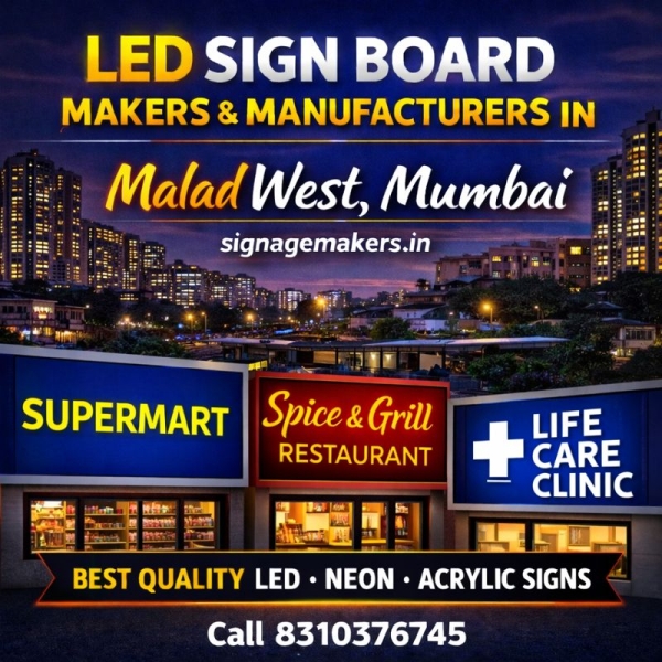 Welcome to signagemakers.in, your reliable LED Sign Board Makers & Manufacturers in Malad West, Mumbai. We specialize in manufacturing premium LED sign boards that help businesses stand out in busy commercial markets, high-street retail areas and residential zones. Malad West is one of Mumbai’s most active...