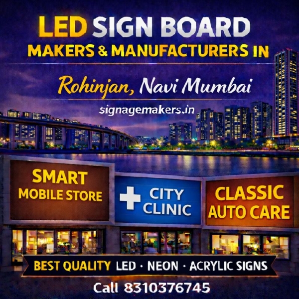 Welcome to signagemakers.in, a trusted destination for LED Sign Board Makers & Manufacturers in Rohinjan, Navi Mumbai. We are direct manufacturers offering high-quality LED sign boards designed to improve business visibility and create a strong professional impression. Rohinjan is a fast-developing residential and commercial locality near...