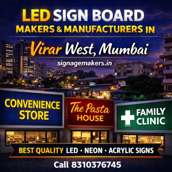 Welcome to signagemakers.in, your dependable LED Sign Board Makers & Manufacturers in Virar West, Mumbai. We specialize in manufacturing high-visibility LED sign boards that help local businesses attract attention and build a strong brand presence in busy market and residential areas. Virar West is a rapidly...