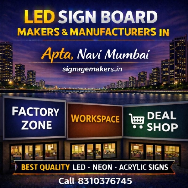 Welcome to signagemakers.in, a trusted name for LED Sign Board Makers & Manufacturers in Apta, Navi Mumbai. We specialize in designing and manufacturing high-quality LED sign boards that help businesses improve visibility, attract customers and build a strong professional brand image. Apta is an important industrial...