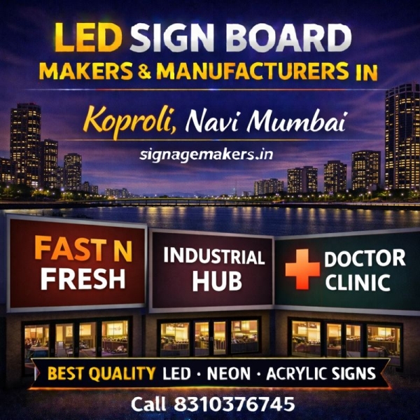 Welcome to signagemakers.in, a trusted choice for LED Sign Board Makers & Manufacturers in Koproli, Navi Mumbai. We design and manufacture premium LED sign boards that help businesses increase visibility, attract customers and build a strong professional brand image. Koproli is a developing commercial and industrial...