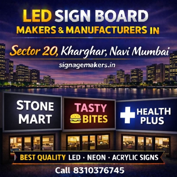 Welcome to signagemakers.in, your trusted partner for LED Sign Board Makers & Manufacturers in Sector 20, Kharghar, Navi Mumbai. We design and manufacture premium LED sign boards that help businesses improve visibility, attract customers and build a strong professional brand image. Sector 20, Kharghar is a...