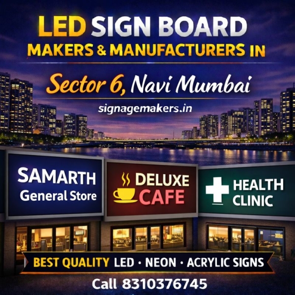 Welcome to signagemakers.in, your reliable destination for LED Sign Board Makers & Manufacturers in Sector 6, Navi Mumbai. We design and manufacture high-quality LED sign boards that help businesses increase visibility, attract customers and create a strong professional identity. Sector 6 is a well-connected commercial and...