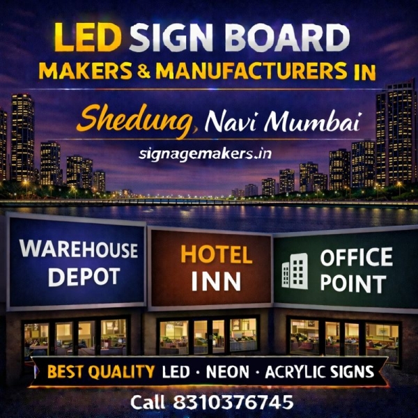 Welcome to signagemakers.in, your trusted destination for LED Sign Board Makers & Manufacturers in Shedung, Navi Mumbai. We specialize in manufacturing high-quality LED sign boards that help businesses improve visibility, attract customers and create a strong professional identity. Shedung is a fast-developing commercial and logistics area...