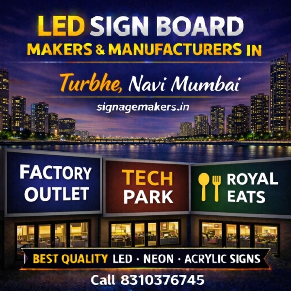 Welcome to signagemakers.in, your trusted destination for LED Sign Board Makers & Manufacturers in Turbhe, Navi Mumbai. We specialize in manufacturing high-quality LED sign boards that help businesses improve visibility, attract customers and establish a strong professional presence. Turbhe is a key industrial and commercial zone...