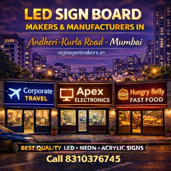 Welcome to signagemakers.in, a trusted name among LED Sign Board Makers & Manufacturers on Andheri–Kurla Road, Mumbai. We specialize in manufacturing high-visibility LED sign boards for corporate offices, IT parks, industrial units and commercial establishments located along one of Mumbai’s busiest business corridors.