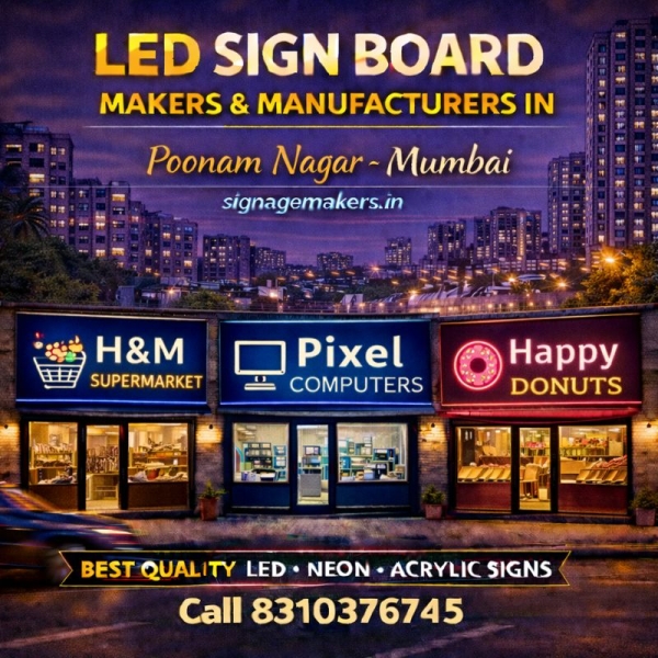 Welcome to signagemakers.in, a trusted and professional choice for LED Sign Board Makers & Manufacturers in Poonam Nagar, Mumbai. We specialize in manufacturing high-quality LED sign boards that help local businesses, shops and offices increase visibility and build a strong brand presence.