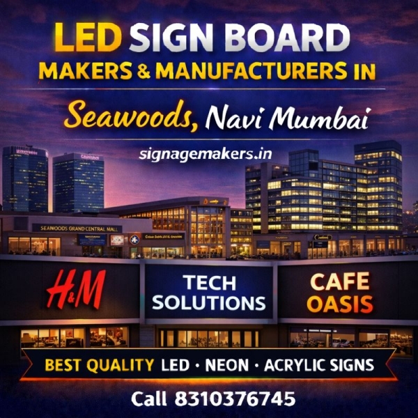 Welcome to signagemakers.in, your trusted LED Sign Board Makers & Manufacturers in Seawoods, Navi Mumbai. We specialize in designing and manufacturing premium-quality LED sign boards that enhance brand visibility and create a strong professional impression in high-end commercial and residential areas.