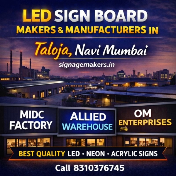 Welcome to signagemakers.in, your reliable LED Sign Board Makers & Manufacturers in Taloja, Navi Mumbai. We specialize in manufacturing high-visibility and heavy-duty LED sign boards designed for industrial areas, MIDC zones, warehouses and growing commercial establishments.