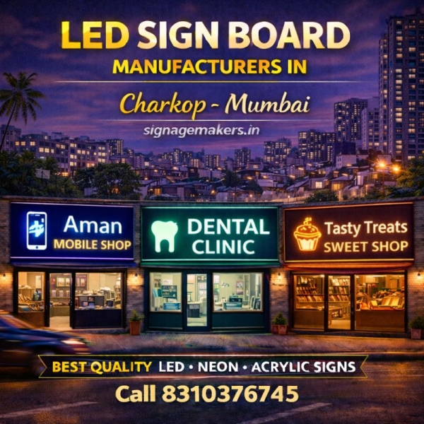 Welcome to signagemakers.in, a trusted name among LED Sign Board Makers & Manufacturers in Charkop, Mumbai. We specialize in manufacturing durable and high-visibility LED sign boards for local businesses, shops, clinics and commercial establishments.
