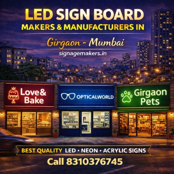 Welcome to signagemakers.in, a trusted name among LED Sign Board Makers & Manufacturers in Girgaon, Mumbai. We specialize in manufacturing high-quality LED sign boards that help local businesses, shops and commercial establishments gain strong visibility in busy and traditional market areas.