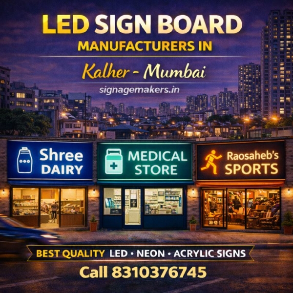 Welcome to signagemakers.in, a trusted name among LED Sign Board Makers & Manufacturers in Kalher, Mumbai. We specialize in manufacturing strong, high-visibility LED sign boards for industrial units, warehouses, factories and commercial establishments.